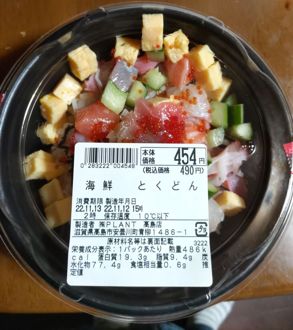 並びにある海鮮丼屋さんが作った「とくどん」「鉄火巻き」をお家で晩御飯用に購入。