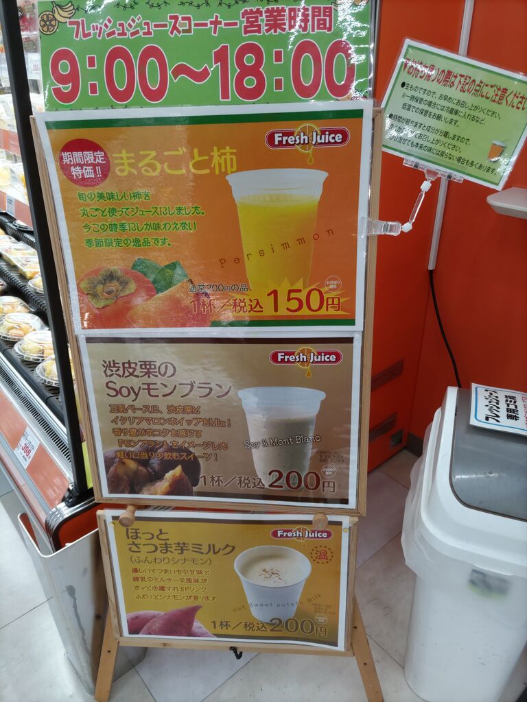 「柿ジュース」150円・「バナナジュース」200円買って帰路に。