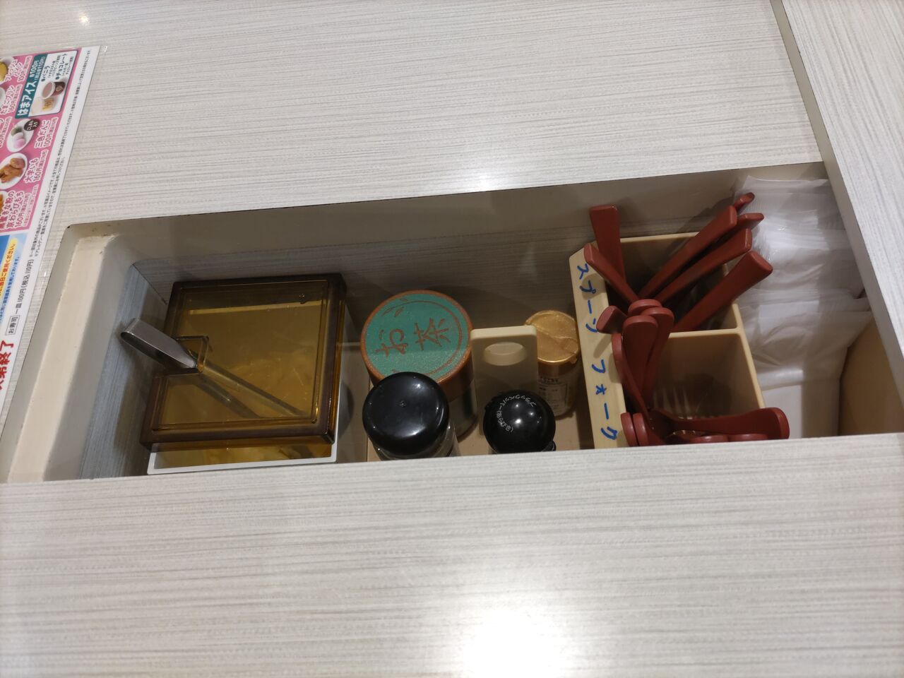 皿は全て同色、受付機、注文はタブレット、会計も入金機が導入されてました。