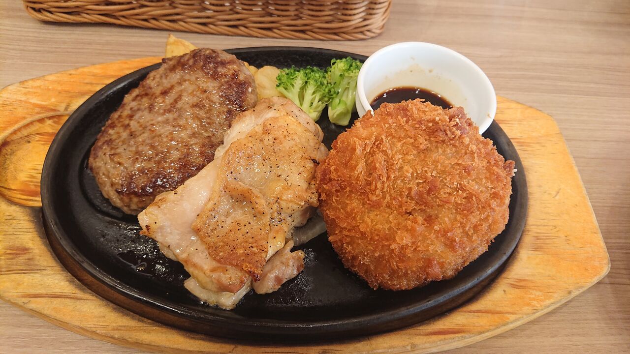 旦那はこの日の日替わりのメニューハンバーグ・チキン・ミンチカツを